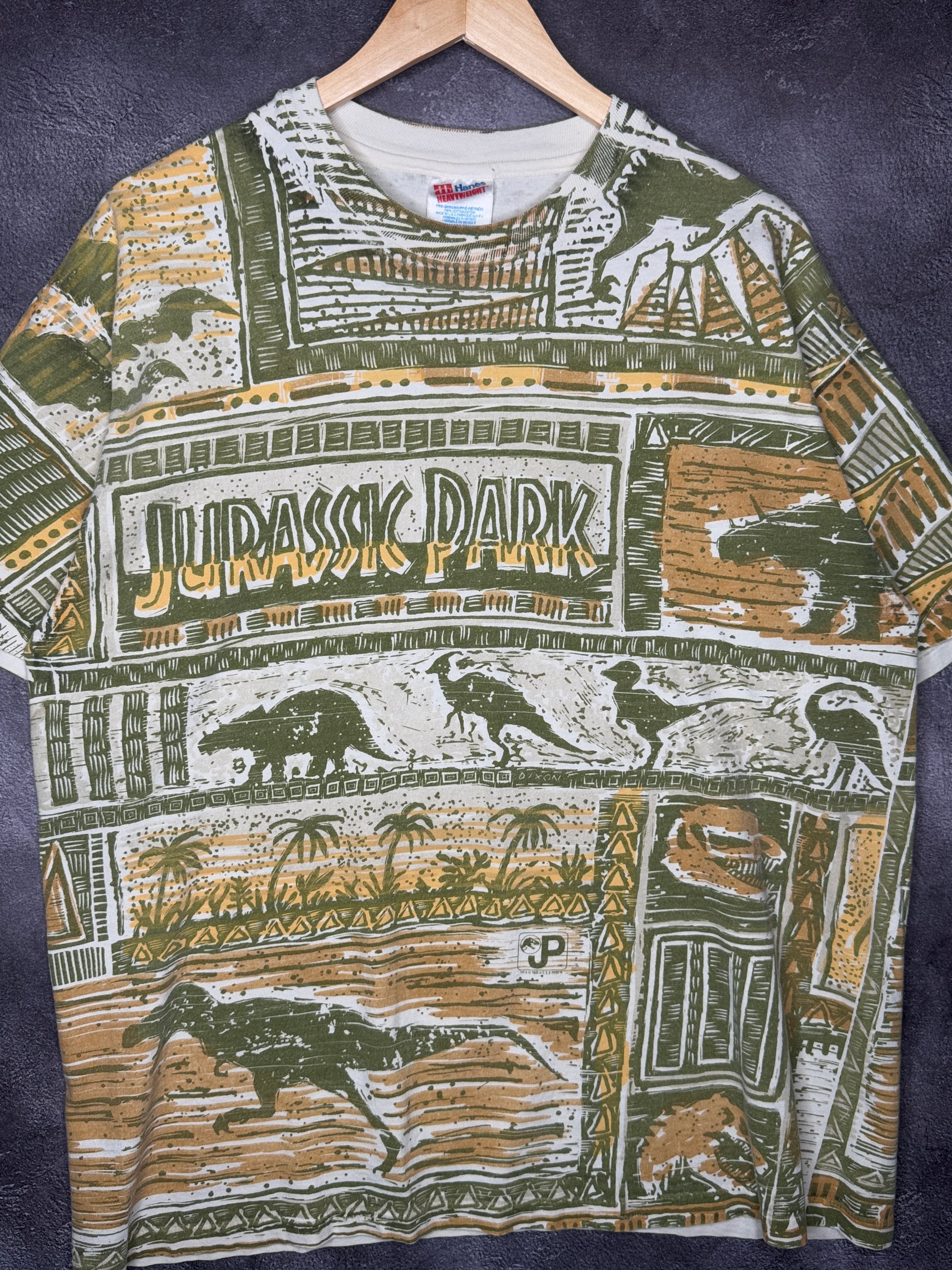 Rare 1993 Jurassic Park Forest Dinasours AOP XL